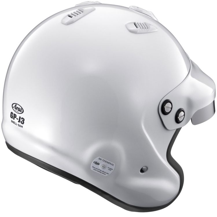 Otevřená helma pro automobilové závody i hobby ježdění na uzavřených okruzích. GP-J3 je dalším příkladem snahy společnosti Arai o pohodlí a funkčnost v jednom atraktivním balení, její jednoduchost a hladké linie vystihují složitý systém řízení energie. Tvar a konstrukce skořepiny zahrnují rozšířené pokrytí obličeje s tvarovanými lícnicemi "FCS" pro lepší podporu a pohodlí. Stejnou péči a pozornost, jakou společnost Arai věnuje každé integrální helmě, najdete i v detailech otevřené helmy GP-J3. Vnitřní střih je typický pro Arai, těží z více než 50 let výzkumu a zdokonalování a výsledkem je helma, která lépe odpovídá tvaru lidské hlavy. Helma je těsná, ale pozoruhodně pohodlná, což umožňuje nosit co nejmenší helmu při maximální ochraně. Helma je standardně osazena otvory se závitem M6 pro případnou instalaci některého z homologovaných systémů Head and Neck Restraint pro jištění hlavy a krku, využívajících pro napojení šrouby M6 mm.