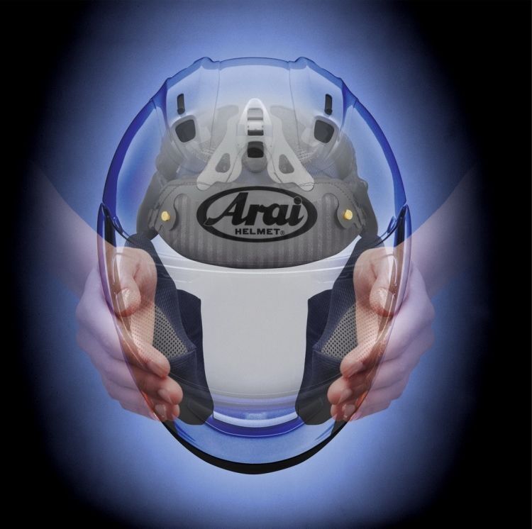 Helma RX-7V EVO představuje vrchol znalostí, zkušeností a know-how společnosti Arai v oblasti technologie helem. Díky vnější skořepině PB-SNC², revolučnímu systému hledí VAS ("Variable Axis System") a výrazně zvětšené hladší oblasti kolem spánků nabízí model RX-7V EVO nový standard v segmentu prémiových helem. Od výstelky z antibakteriálního materiálu s ještě štíhlejším rámečkem až po kanálky, vylepšený difuzor a integrované Air Channels – každá část vykazuje pozornost věnovanou detailům, která je pro společnost Arai tak typická. Společnost Arai neustále vylepšuje výkonnost "glancing off" na základě poznatků z reálných scénářů. Díky pevnější a hladší skořepině a systému VAS je model RX-7V EVO blíže ideálnímu tvaru helmy víc než kdy dříve. Díky systému VAS je poloha uchycení hledí snížena o 24 mm ve snaze o dosažení ideálního hladšího tvaru, který zvyšuje schopnost odrazové energie. Skořepina je tak výrazně nad minimálními testovacími limity normy Snell.