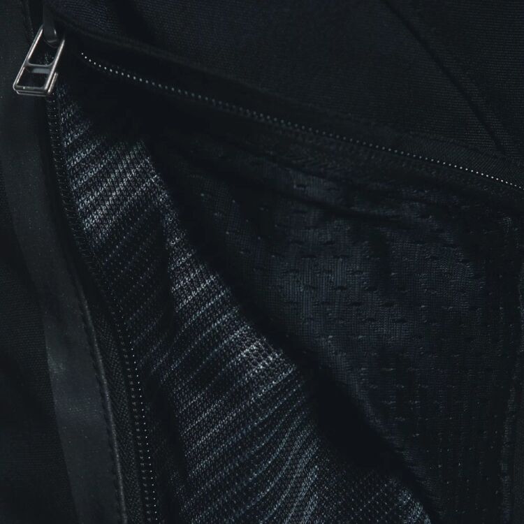 • větrací boční kapsy na zip na stehnech