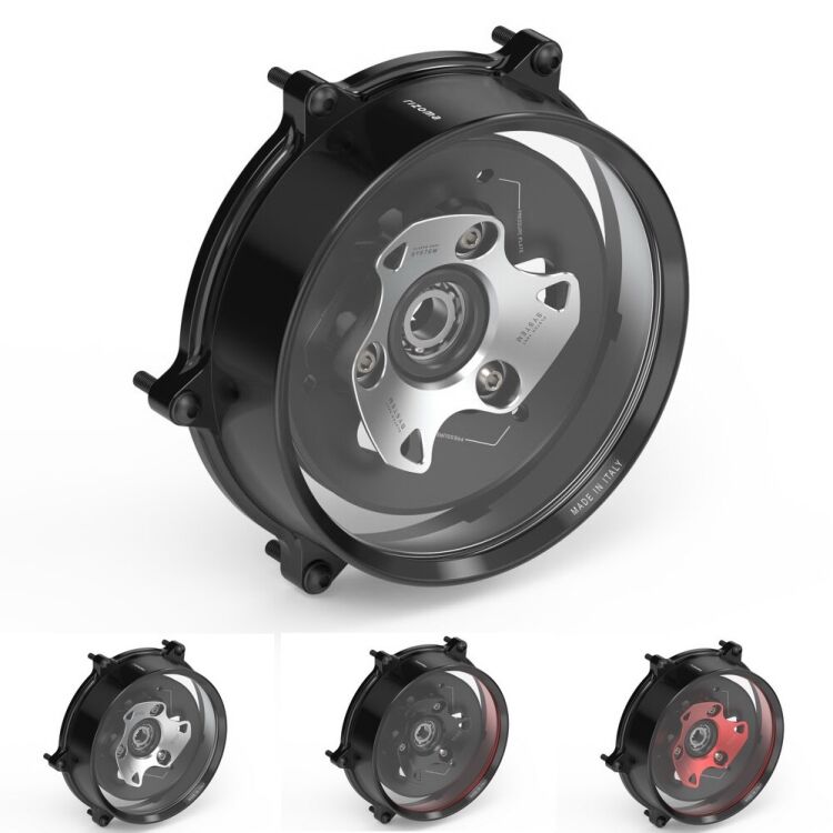 Rizoma nabízí tento průhledný kryt spojky pro více než 30 modelů DUCATI. Zákazníci si mohou vybrat ze tří různých eloxovaných variant pro jedinečný zážitek z přizpůsobení svého motocyklu. Mezi kompatibilní modely patří: