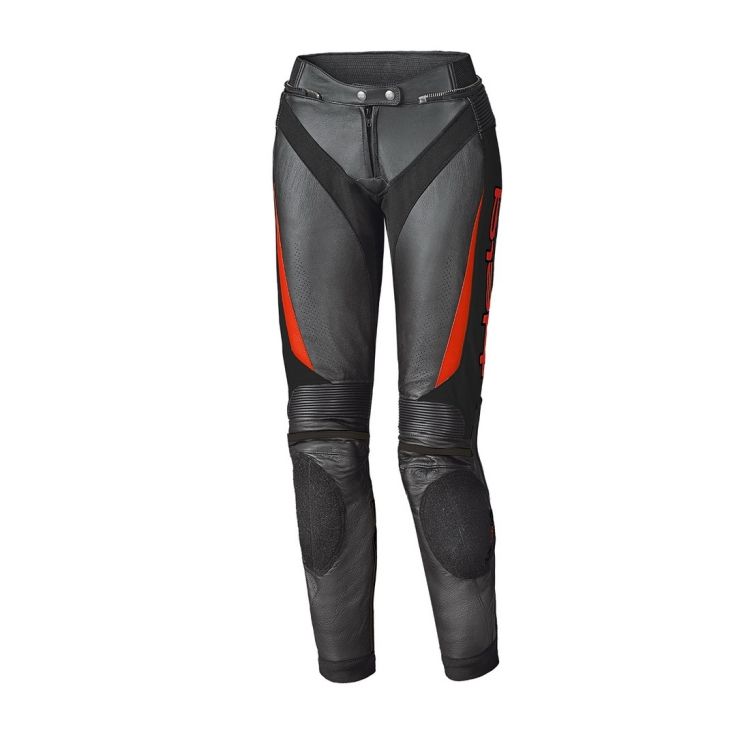 Dámské sportovní kožené kalhoty na motocykl s perforací a větráním, ideální pro letní období. Dostupné rovněž zkrácené nebo naopak prodloužené “Slim” velikosti v tomto barevném provedení.