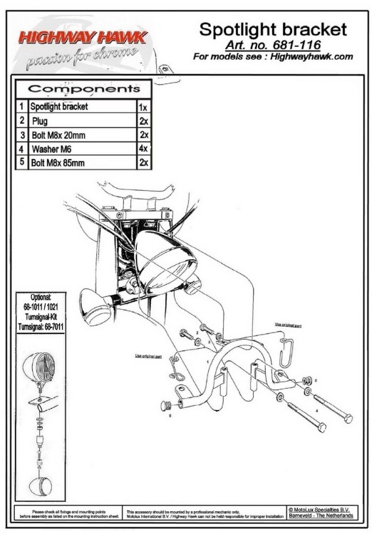 Držák HIGHWAY HAWK pro hlavní motocyklové světlo montážní mezikus pro montáž hlavního...