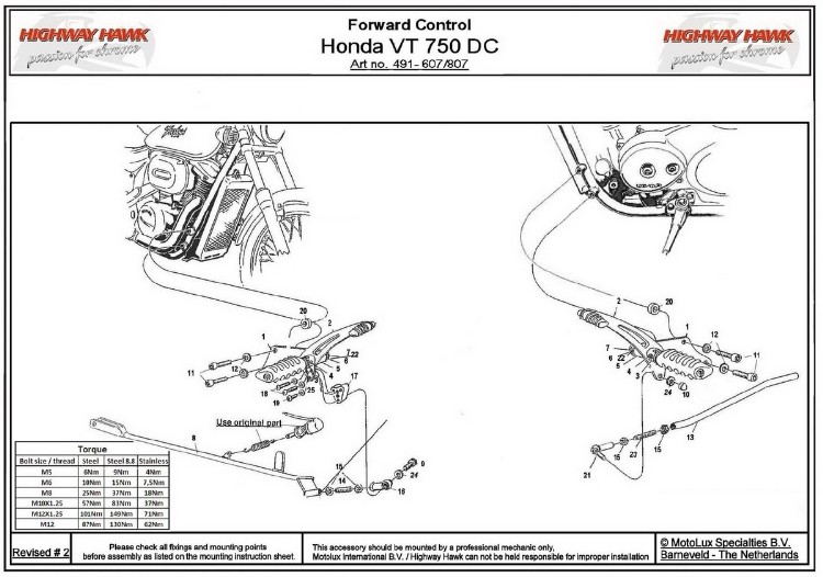 Přepákování HIGHWAY HAWK Tech Glide se sklopnými stupačkami řidiče vzdálenost od...