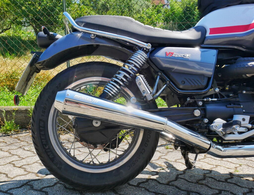 Elegance, zvuk a výkon: Výfuky Mistral pro V7 850 kombinují klasický design s moderními technickými řešeními, aby zachovaly autentičnost a styl motocyklu.