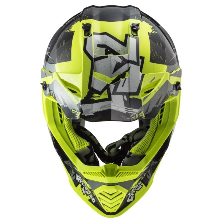 Technicky vyspělá zbraň pro mladé závodníky. Extrémně lehká skořepina, kompatibilní s moderními chrániči krční páteře, je vyrobena z inovativního patentovaného materiálu Kinetic Polymer Alloy (KPA). Tento nový materiál je velmi lehký a zároveň pevný, s vynikající schopností pohlcovat energii a vysokou odolností proti proražení, který svými vlastnostmi soupeří i s high-endovými kompozity. Velké větrací otvory zajišťují dostatek vzduchu, aby si junior udržel chladnou hlavu při motokrosu, enduru nebo na čtyřkolce. Závodní zapínání dvojitými D-kroužky. Hmotnost pouze 1050 g.