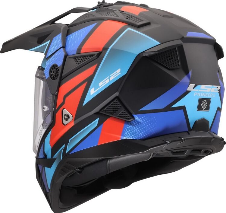 Moderní helma MX702 Pioneer II pro enduro, adventure, supermoto a čtyřkolky nabízí vysokou variabilitu, široké možnosti využití a atraktivní design. Vyvinutá ve spolupráci s jezdci mistrovství světa MX, enduro a supermoto, helma Pioneer II MX702 těží z dlouholetých úspěchů značky LS2 ve vrcholných soutěžích a dálkových rallye. Vybavená plexištítem, slunečním štítkem a navíc i integrovanou sluneční clonou umožňuje širokou variabilitu v širokém spektru podmínek, lze jí používat s plexištítem nebo MX brýlemi. Nová přepracovaná skořepina kompatibilní s moderními chrániči krční páteře je vyrobena z inovativního patentovaného materiálu Kinetic Polymer Alloy (KPA). Přepracované účinnější větrání a příjemný antialergický kompletně vyjímatelný a pratelný interiér. Emergency Release System s rychle vyjímatelnými lícnicemi umožňuje snadné sejmutí helmy v případě nouze. Rychlé zapínání ocelovou rychlosponou.