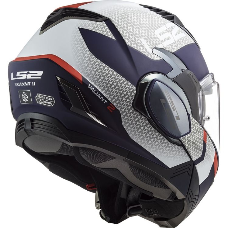 Motocyklová helma LS2 Valiant II je nejvšestrannější přilbou na trhu, která v sobě ideálně spojuje výhody integrálních a otevřených helem. Návrháři LS2 vzali ověřený koncept úplného překlopení brady a navrhli zcela nový mechanismus, díky kterému je Valiant II v současnosti nejkompaktnější a nejlehčí helmou ve své kategorii. S přilbou LS2 VALIANT II si můžete vychutnat to nejlepší z obou světů - můžete se těšit z plné ochrany integrální přilby když potřebujete, a z volnosti a příjemného pohodlí otevřených přileb když chcete. To vše navíc s nízkým aerodynamickým odporem. Přepracovaná kinematika překlápění umožňuje snadné překlopení brady jednou rukou se současným plně automatickým otevřením plexi. Integrovaná sluneční clona umožňuje jezdit bez slunečních brýlí a zvyšuje vaši bezpečnost, když se světelné podmínky náhle změní, například v tunelu nebo v lese. Plexi s úpravou proti poškrábání a mlžení lze navíc doplnit Anti-fog folií Pinlock Max Vision, která je v ceně. Přilba je homologovaná jako integrální i jako otevřená.