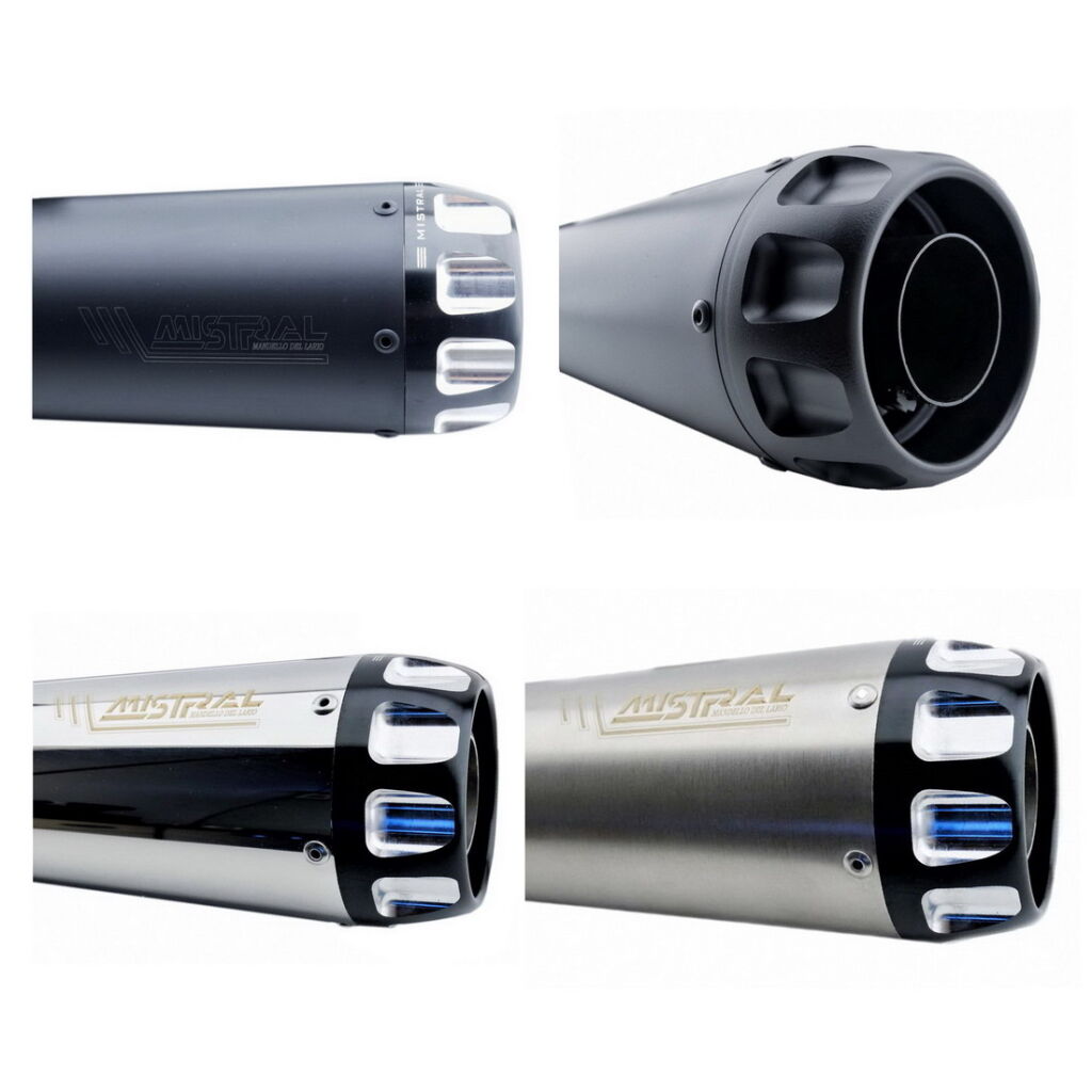 Zkrácené výfuky Mistral Exclusive pro model V7 850 E5 mají kompaktní design, který podtrhuje osobnost a odvážné linie motocyklu. Kombinují eleganci s charakterem inspirovaným café racery. Koncovka výfuku je CNC obráběna z masivního hliníku, eloxována v černé barvě a dále opracována tak, aby vznikly saténové drážky, které podtrhují její osobitý styl.
