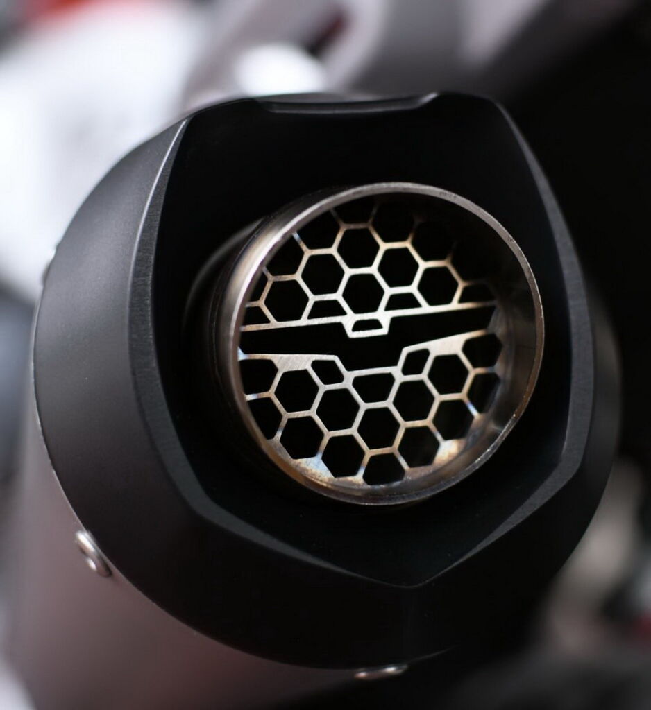 Hexagonální koncovka výfuku z nerezové oceli vyvinutá speciálně pro MOTO GUZZI V85-TT (Euro4)....