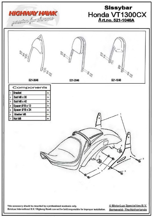 Montážní sada HIGHWAY HAWK za sedlo spolujezdce jedná se pouze o montážní sadu k...