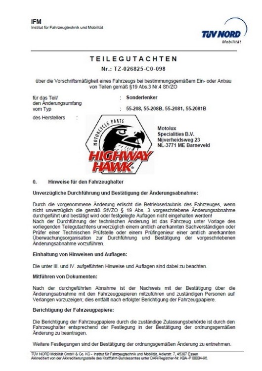 Motocyklová řidítka HIGHWAY HAWK XLX průměr řidítek v gripech 25 mm (1") délka ohybu...