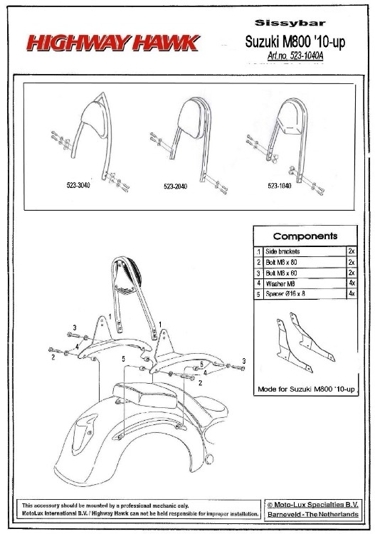 Montážní sada HIGHWAY HAWK za sedlo spolujezdce jedná se pouze o montážní sadu k...