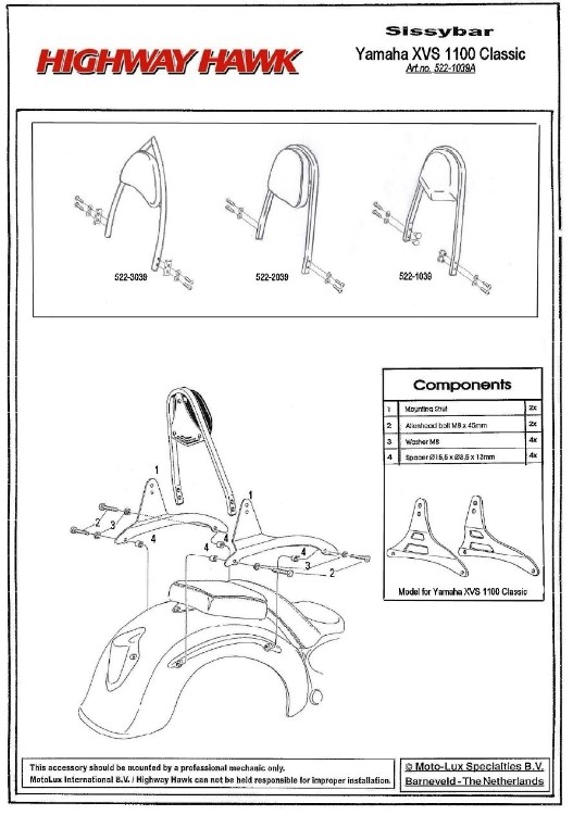 | Typ motocyklu: | XVS 1100 A Drag Star Classic, V-Star 1100 Classic |