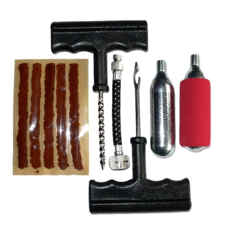 Lehká a malá opravná sada pro opravy pneumatik motocyklů, skútrů a čtyřkolek. Utěsňuje průpichy...