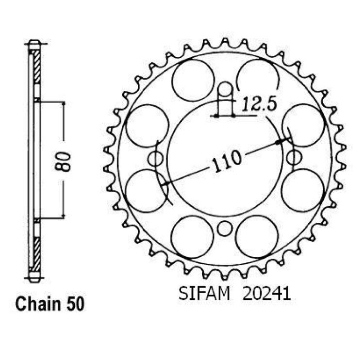 50 zubů Honda XR 250 R, r.v. 1984 – 1985 výrobce: Sifam