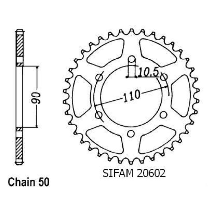 38 zubů Kawasaki BJ 250 ESTRELLA, r.v. 1993 – 2000 výrobce: Sifam
