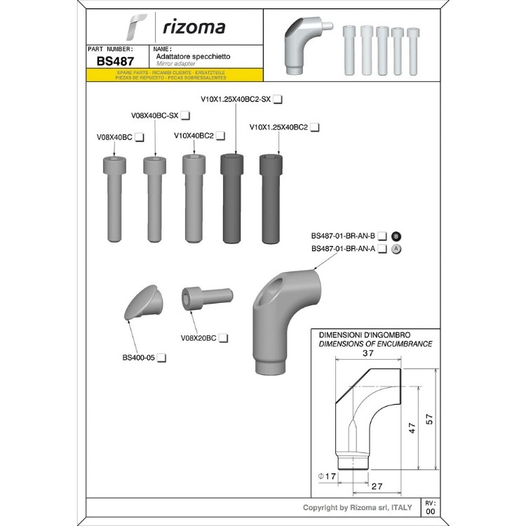 Montážní redukce RIZOMA pro montáž zpětných zrcátek Rizoma na řidítka doporučujeme...